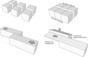Este proyecto tuvo requisitos muy particulares, tales como una cierta cantidad de recámaras y el área mínima que se espera de ellas. Por la naturaleza de los habitantes, la vivienda debe ser 100% adaptada a personas con movilidad reducida, como circulaciones, cocina, baños, etc. Por otro lado se busca un corredor externo a lo largo de toda al vivienda para aprovechar el entorno y ubicar dentro del área pública una zona para un piano de cola y una chimenea que caliente a toda la vivienda.